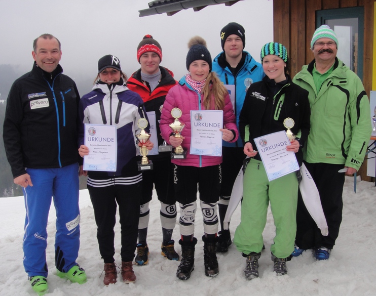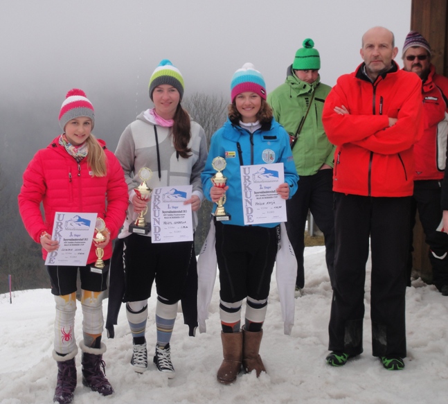Franziska Leyrer schwimmt derzeit auf einer Welle des Erfolgs: Nach den Triumphen bei der Landshuter Slalommeisterschaft, der Landkreismeisterschaft und dem BSJ-Rennen (hier sogar vor der männlichen Konkurrrenz) hat sie in Mitterfirmiansreut am Kißlingerhang die gesamte Bayerwaldelite hinter sich gelassen. Auf dem mit 47 Toren auf der ca. 480 Meter langen Strecke ausgeflaggten Slalom kam sie am besten mit den nicht ganz einfachen Bedingungen -Nebel, Plusgrade und nasser Altschnee- zurecht. Nach dem ersten Durchgang noch an zweiter Stelle liegend gelang ihr im zweiten Lauf eine fulminante Fahrt, die ihr noch zwei Zehntel Vorsprung vor Isabella Feistl vom SC Dingolfing eintrugen. Mit mehr Abstand belgte Katja Frisch vom ASV Arrach den dritten Platz.