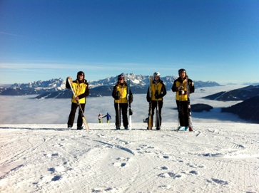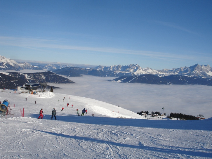 Bei Kaiserwetter startete die Skiabteilung in die Wintersaison - und das gänzlich ohne Wartezeiten an den Liften. Zwar war die weiße Pracht noch nicht allzu üppig, doch zeigte Flachau, wie man sie mit Schneekanonen ergänzen kann. Oben konnte man problemlos seine Schwünge ziehen. Die Talabfahrt war noch nicht zu empfehlen, war aber sowieso in Nebel gehüllt. Aber im oberen Bereich herrschte strahlender Sonnenschein. Ein wahnsinnig schöner Auftakt.